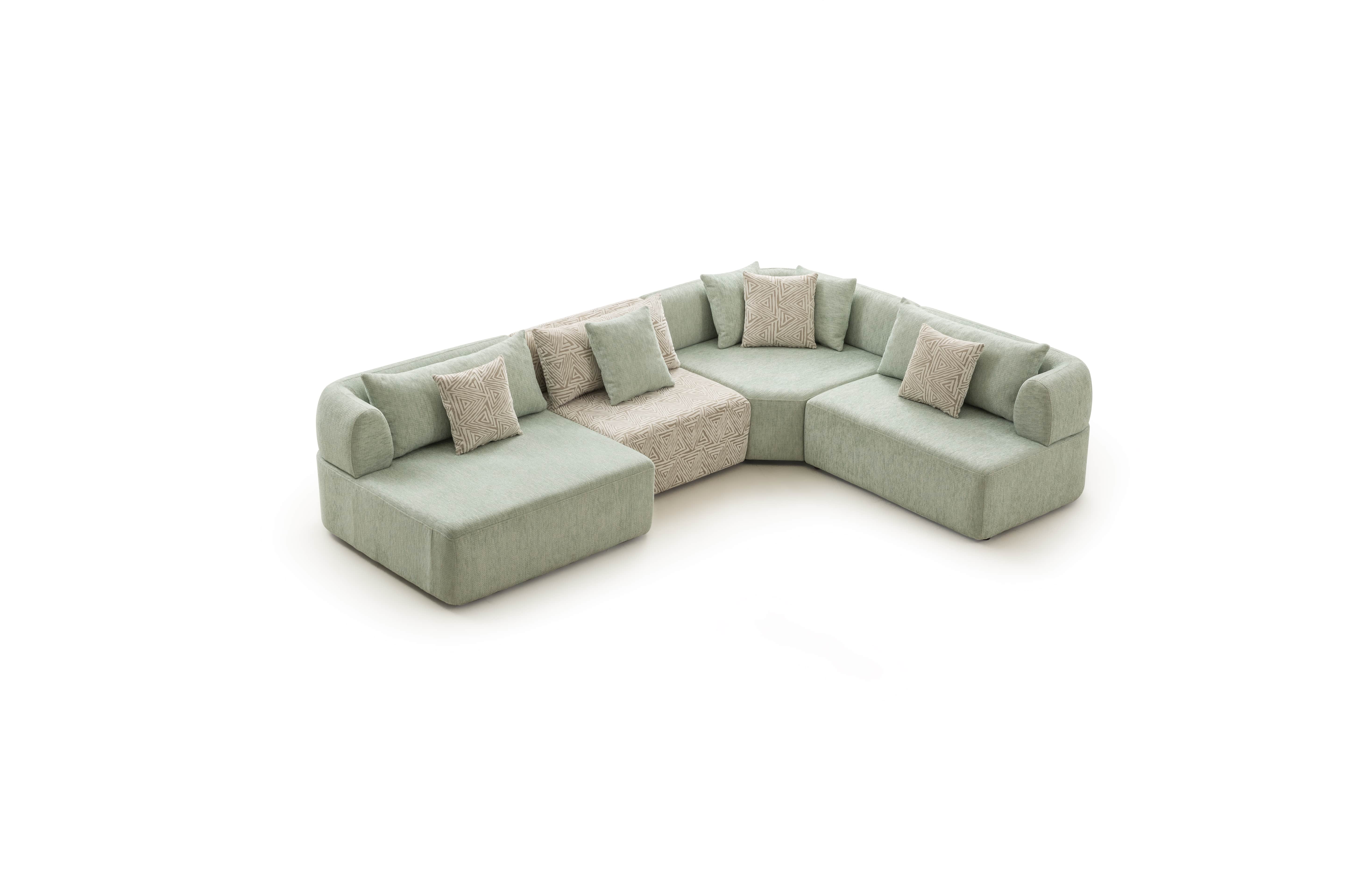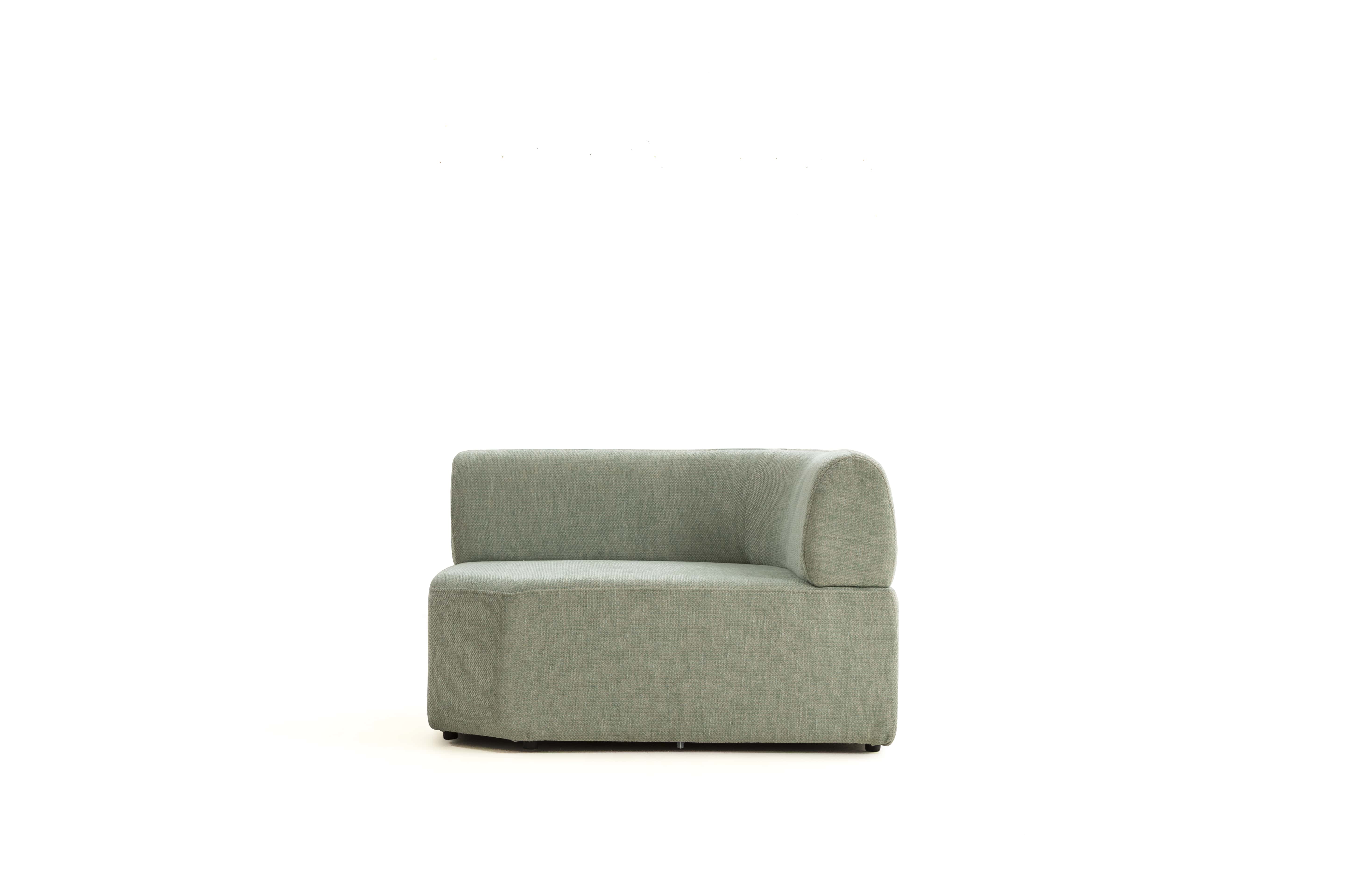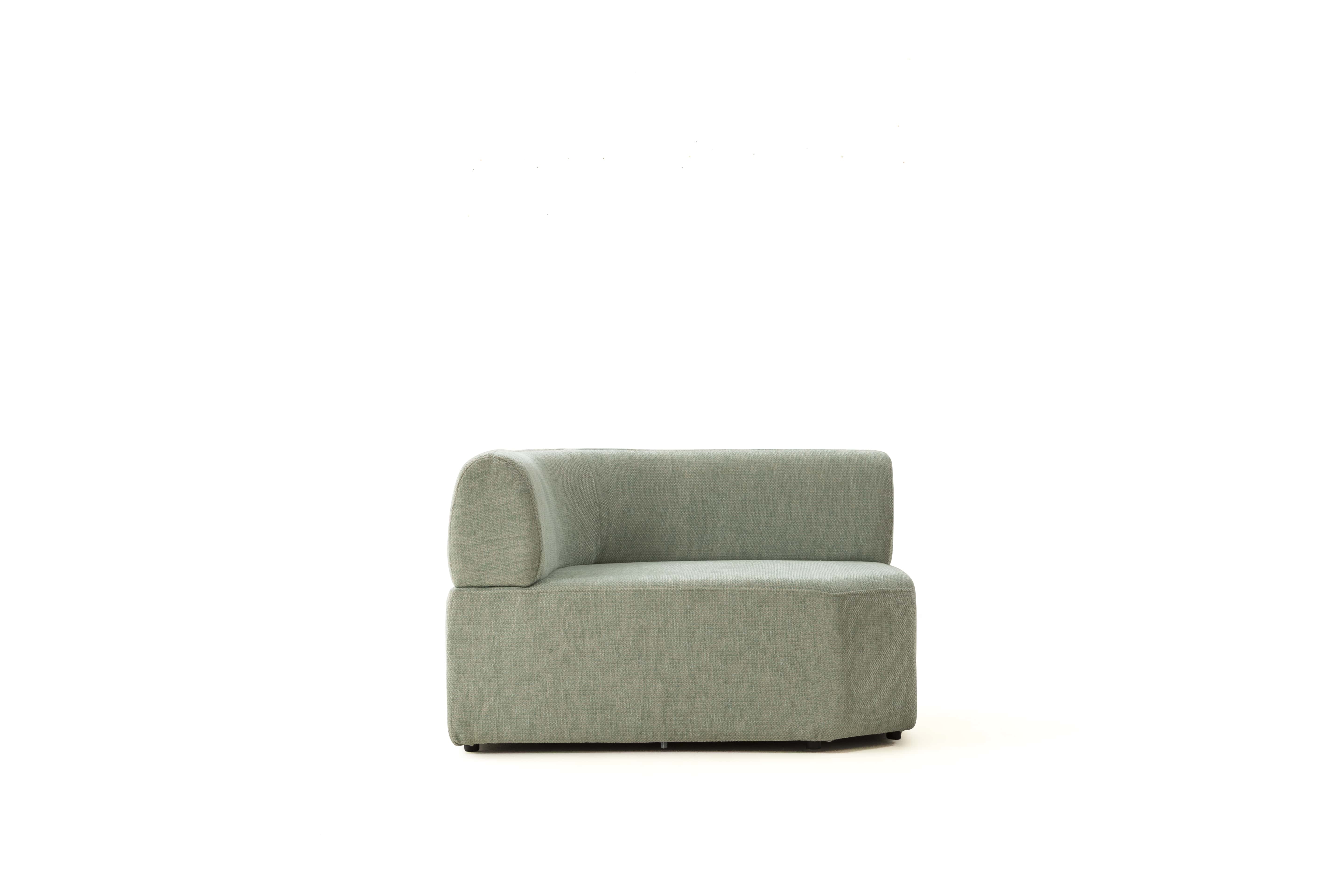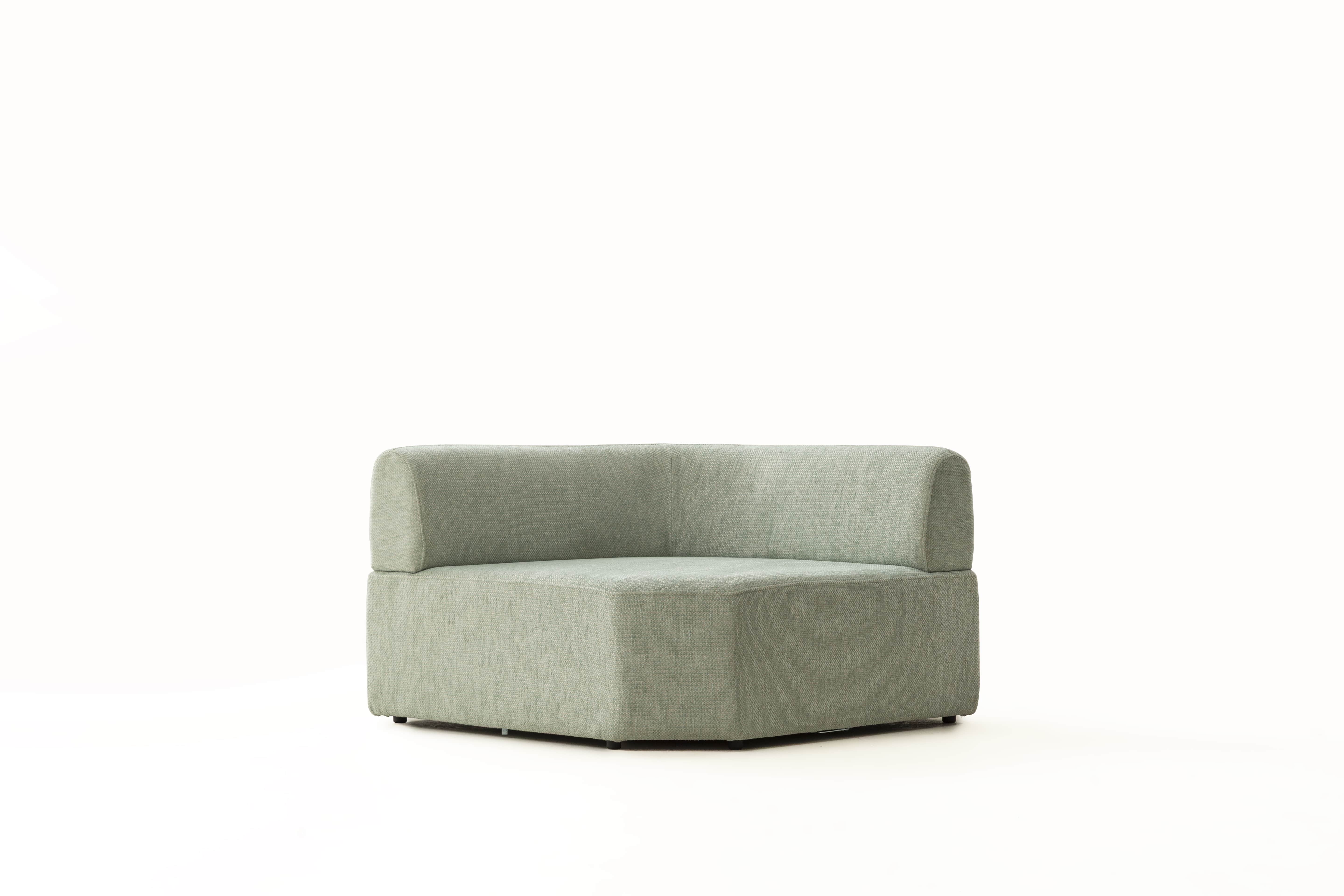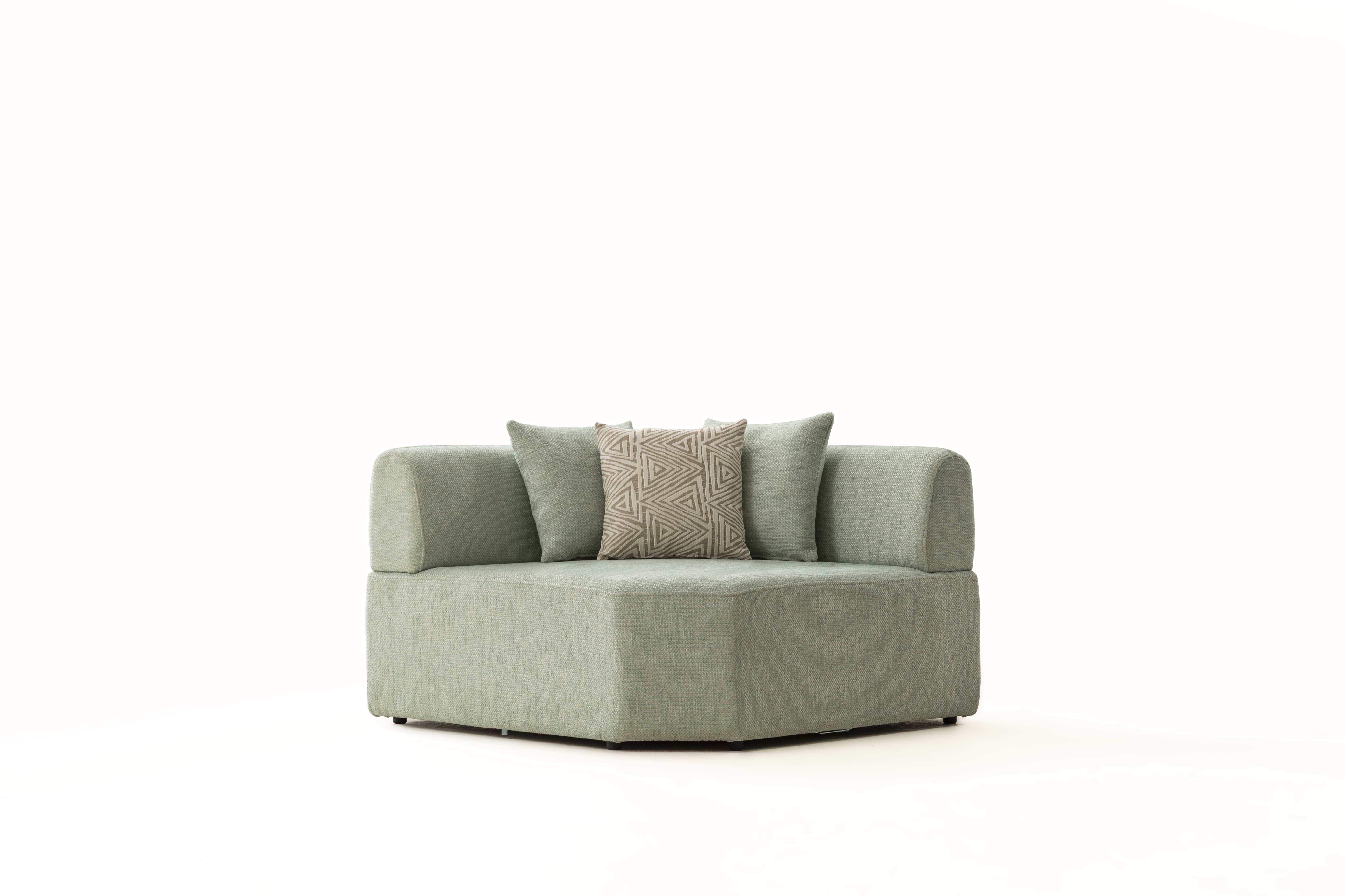 Köşe modülü, geniş ve modern oturma düzenleri için tamamlayıcı bir yapıya sahiptir.