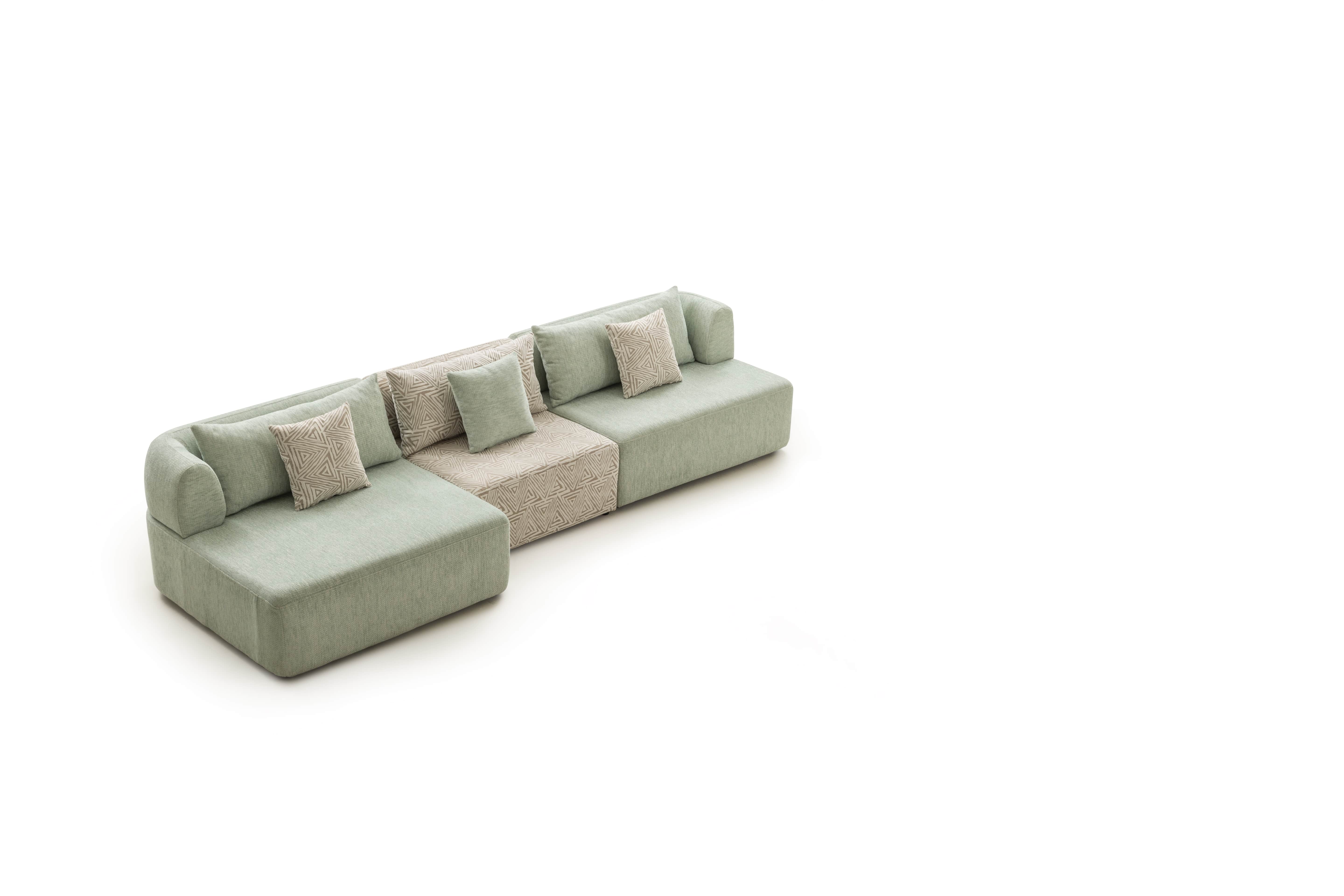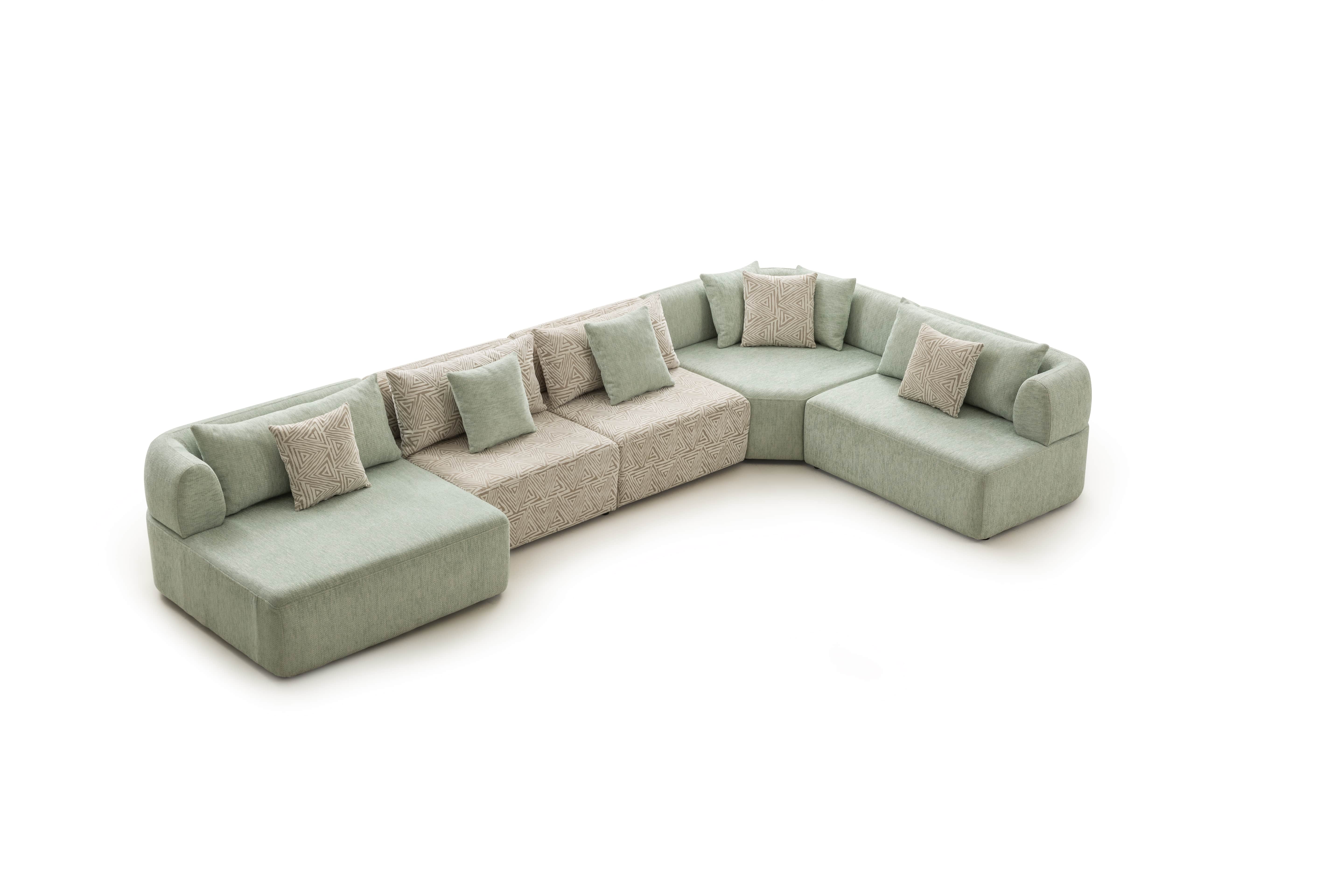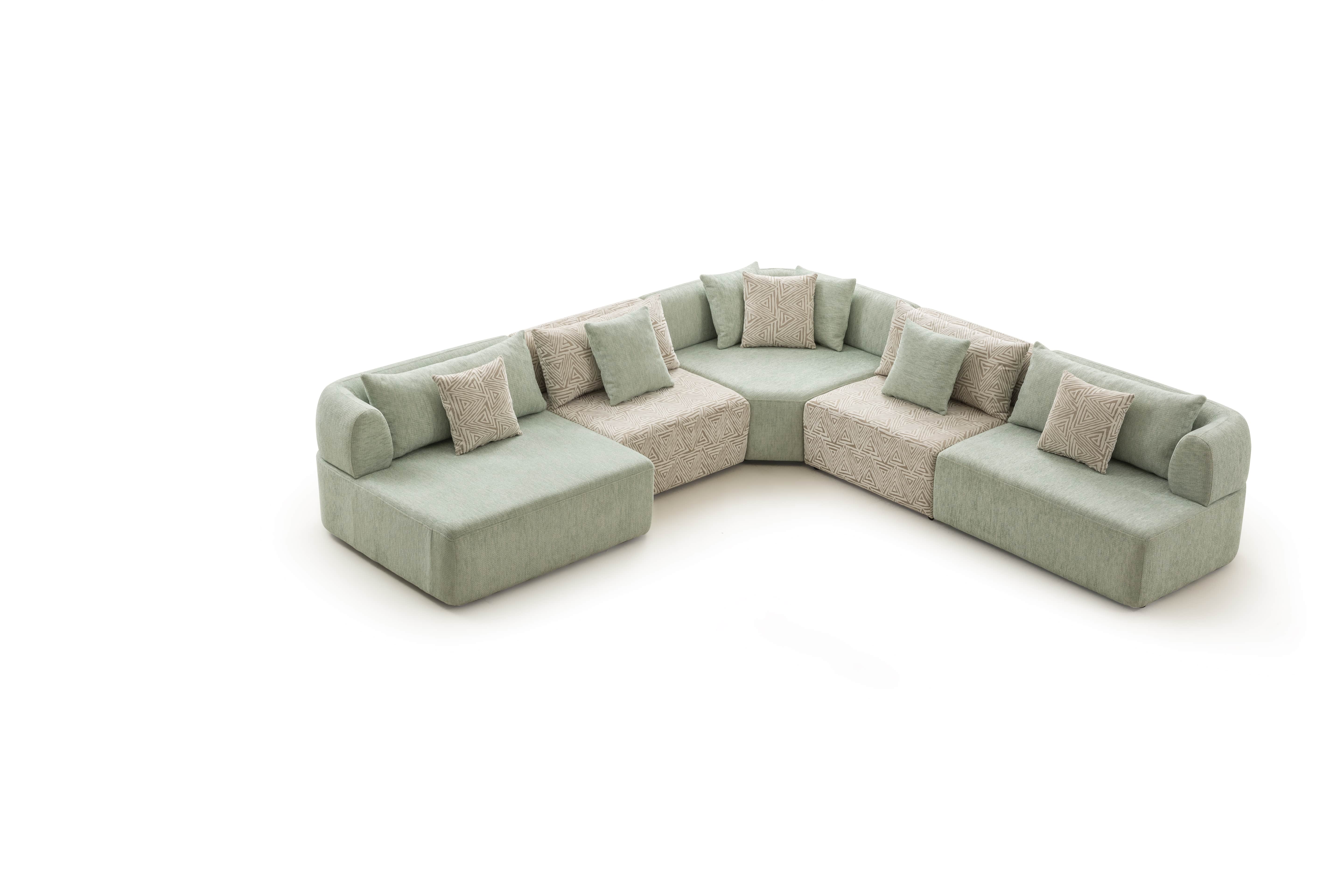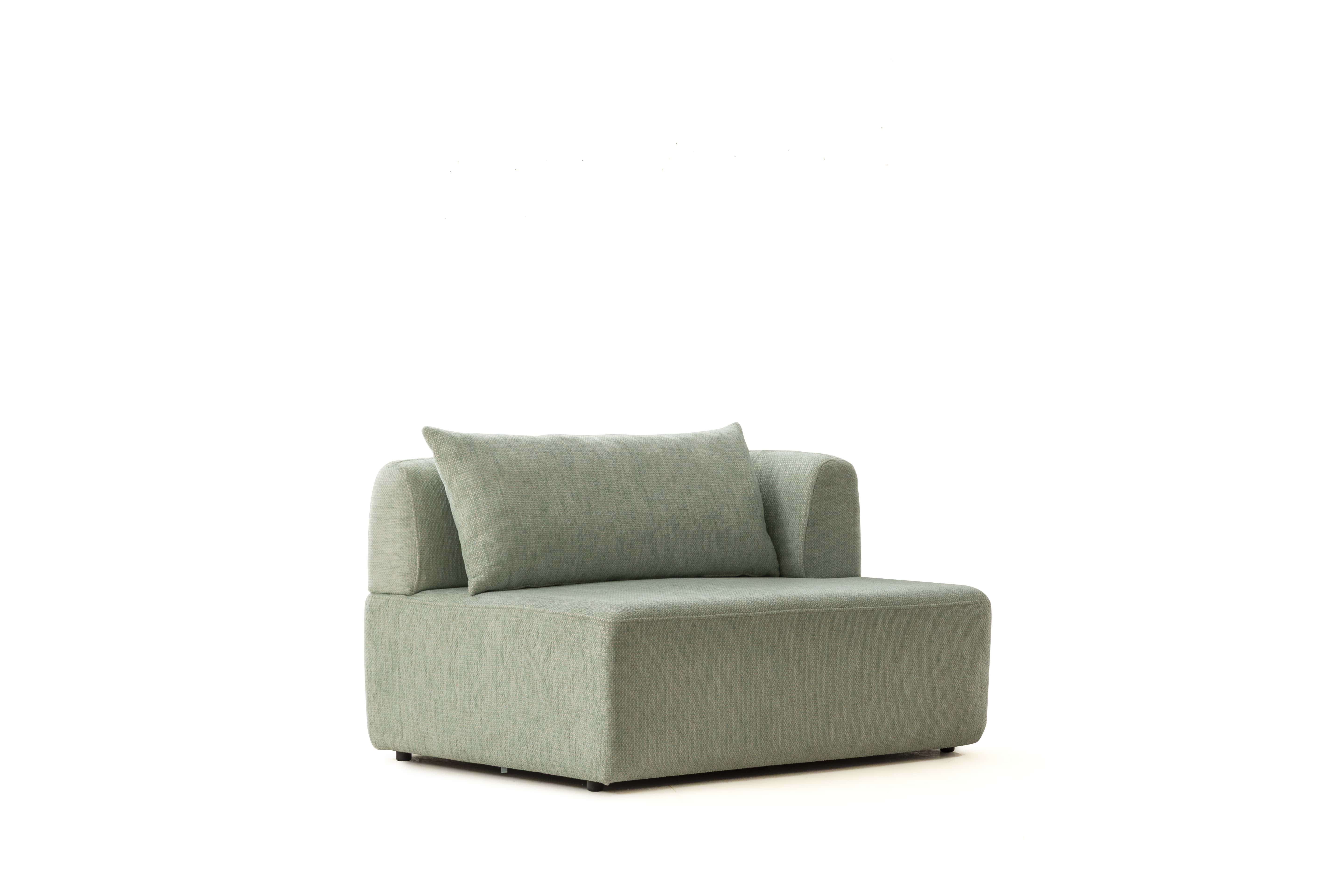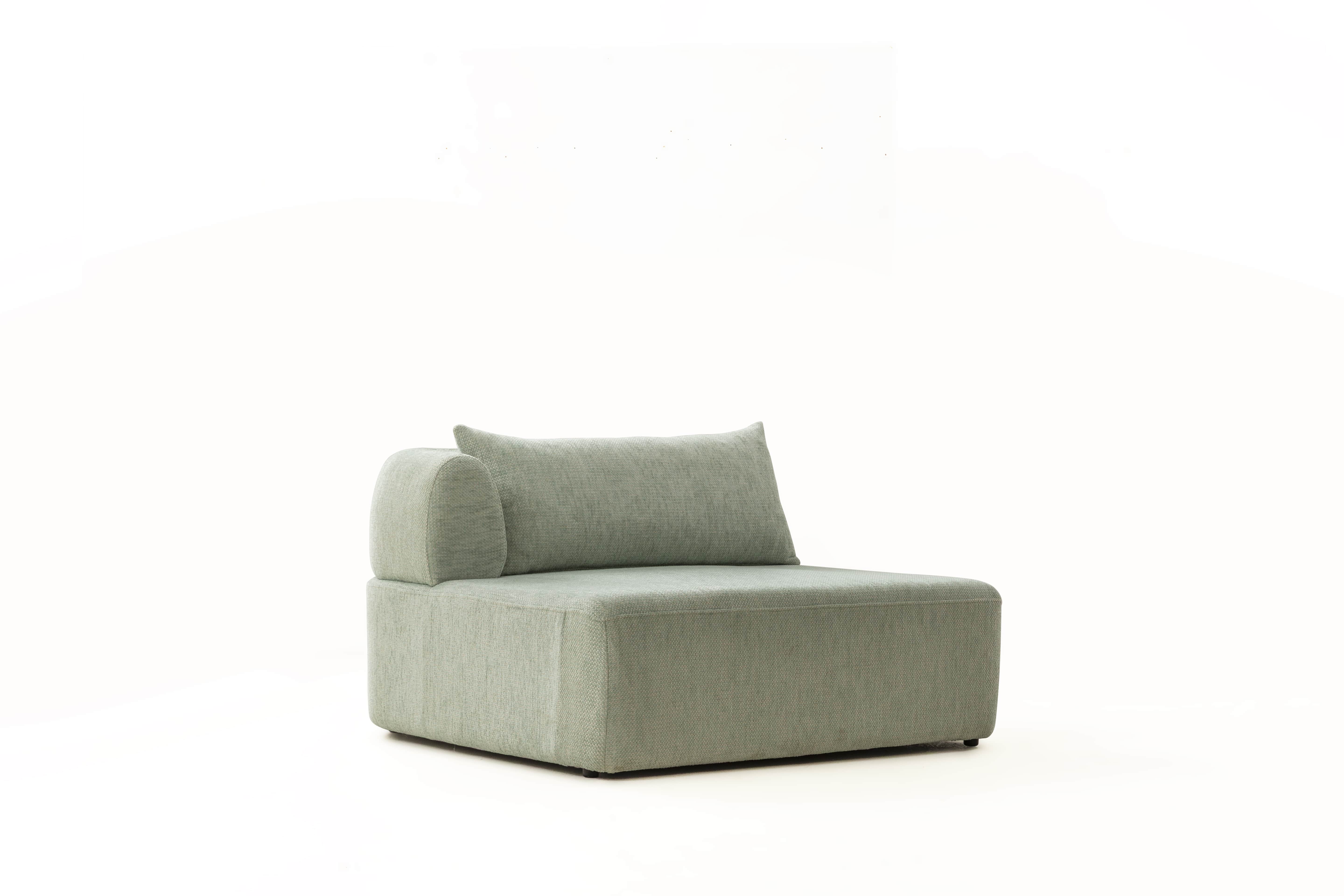 Köşe modülü, geniş ve modern oturma düzenleri için tamamlayıcı bir yapıya sahiptir.
