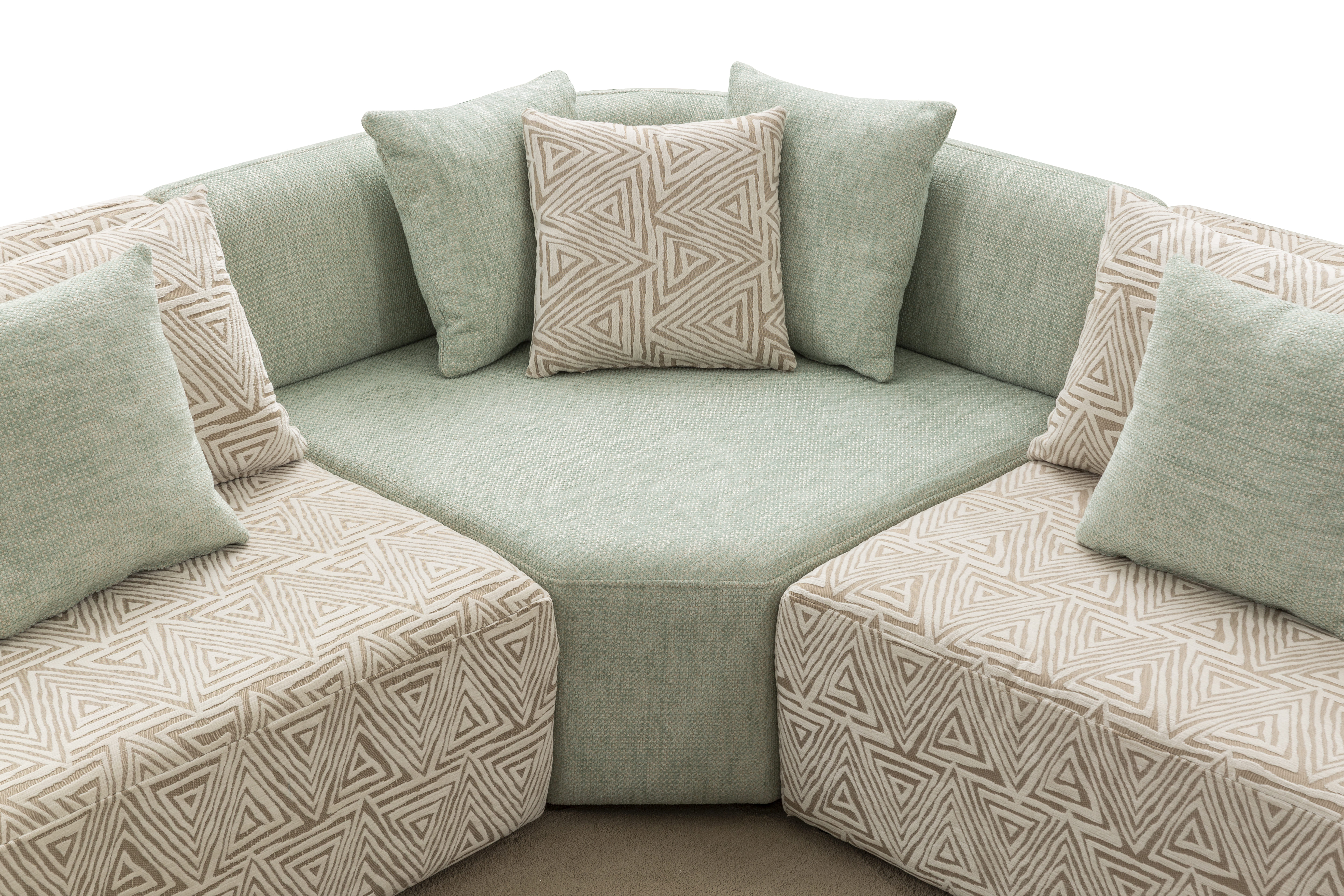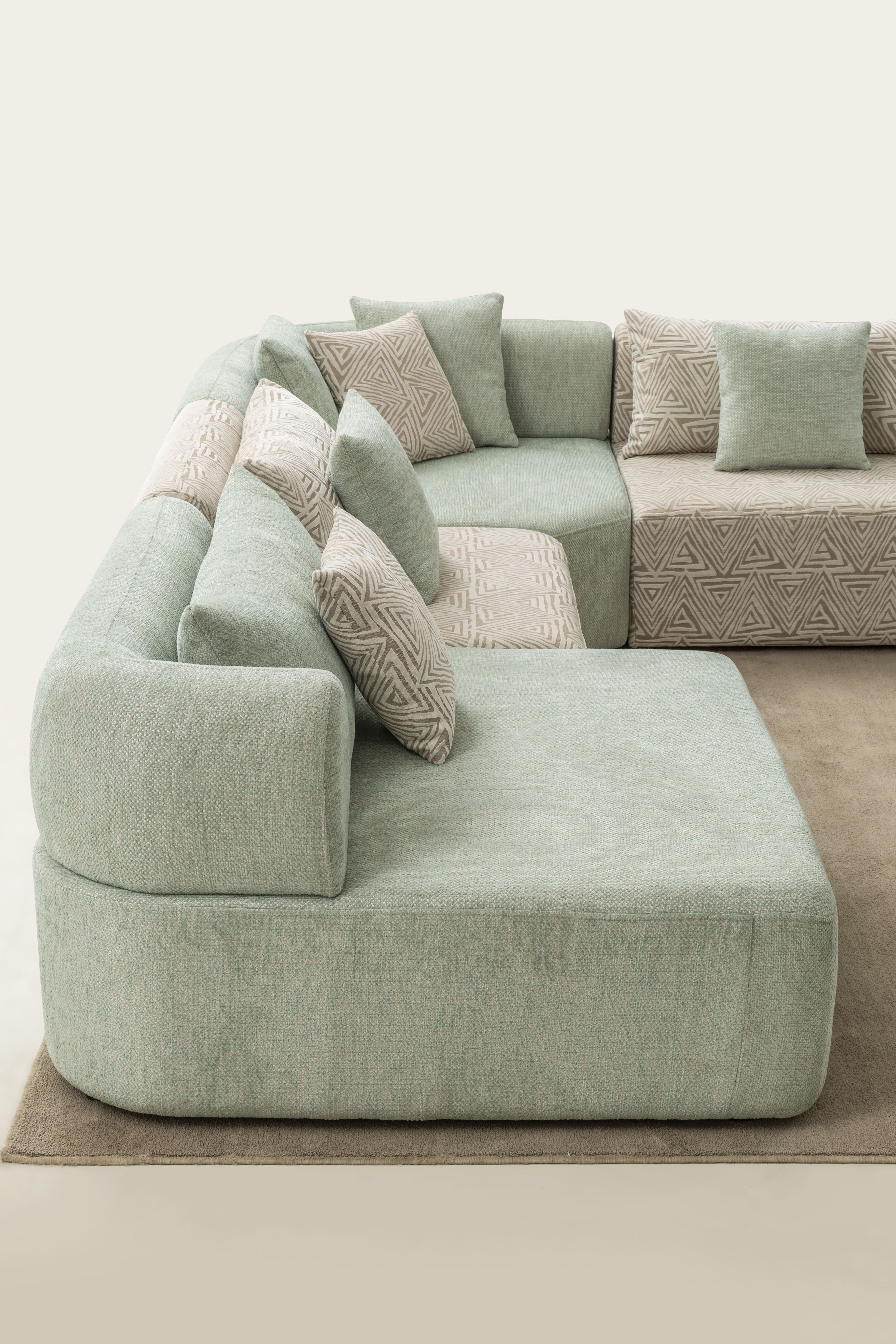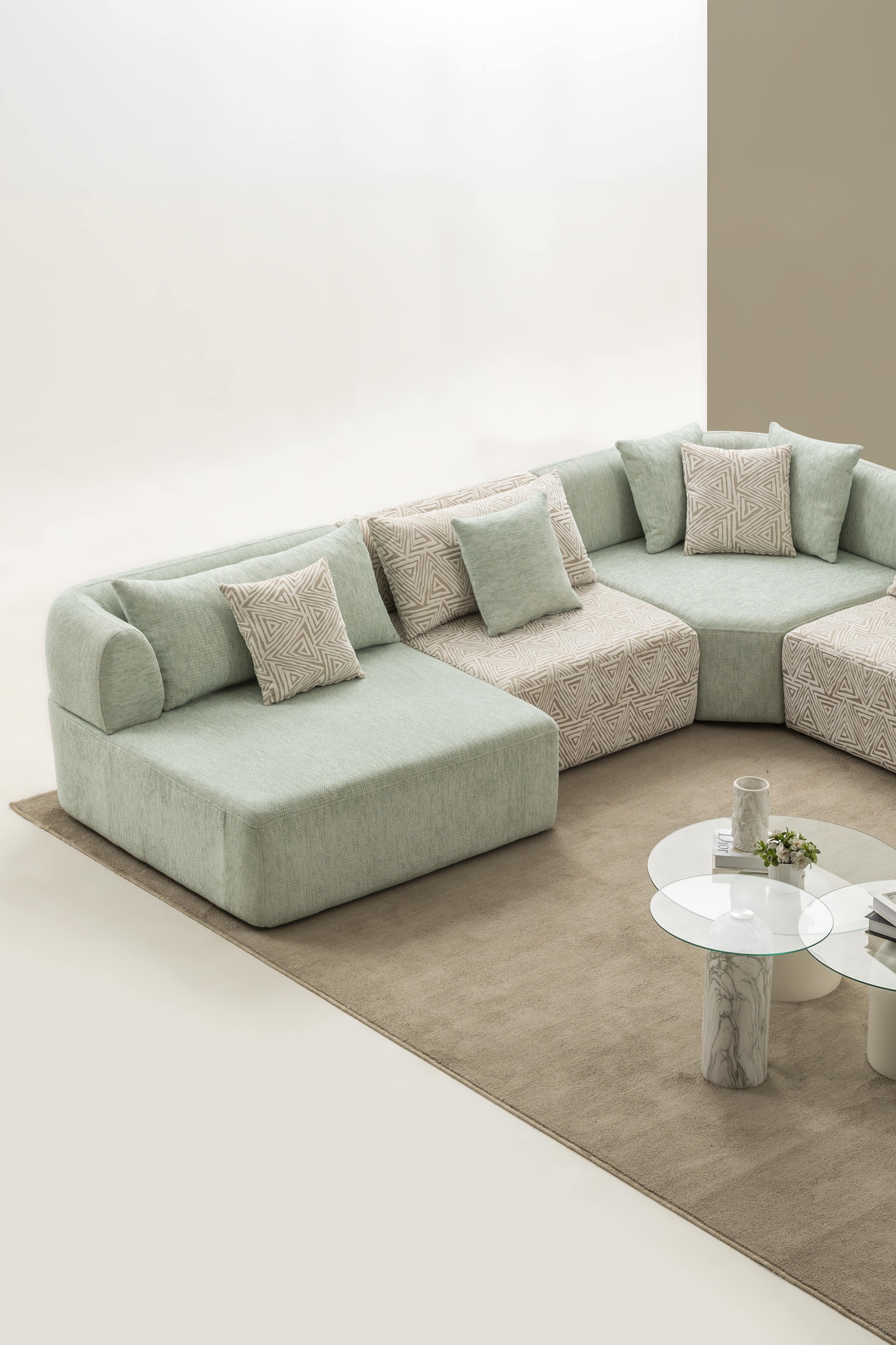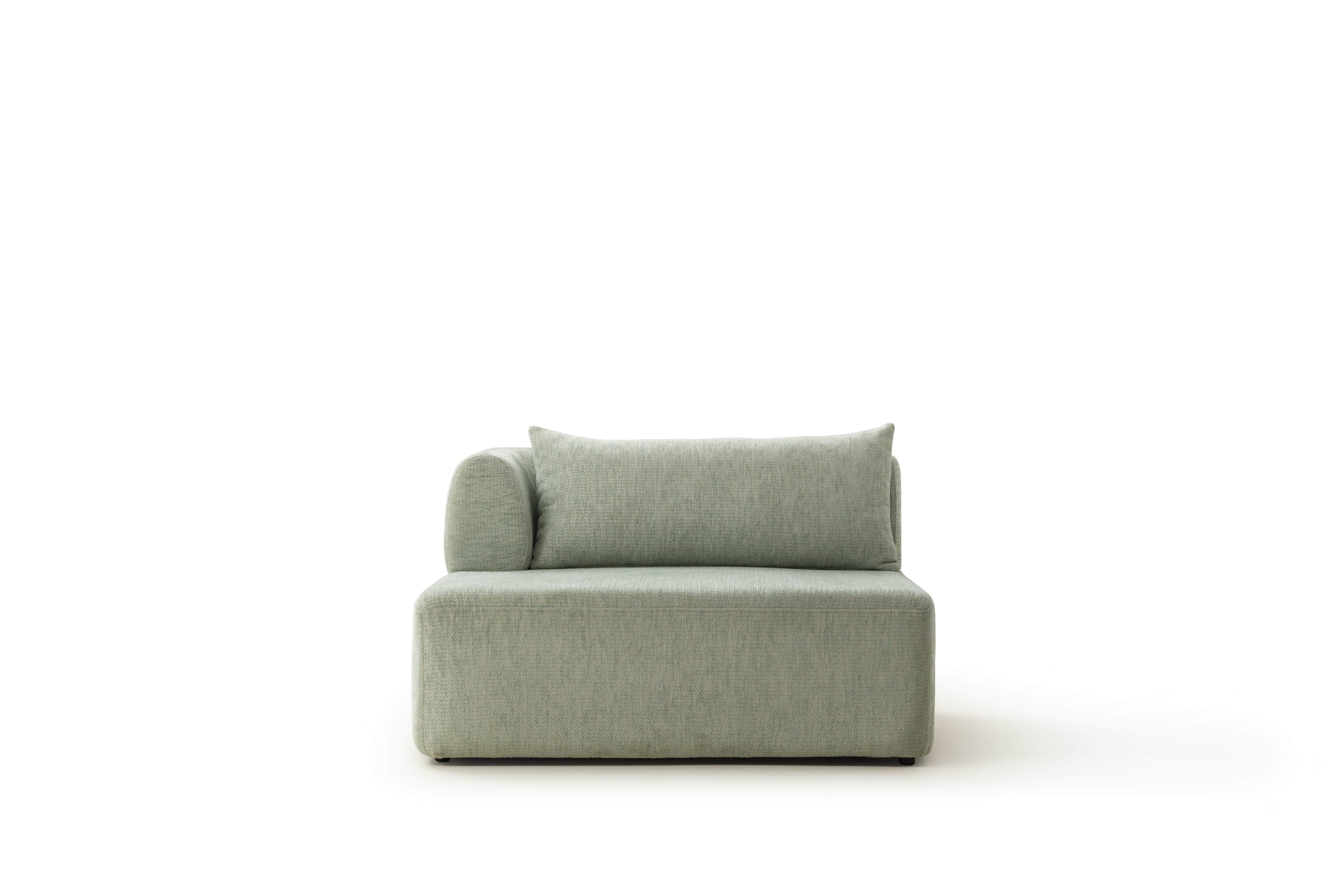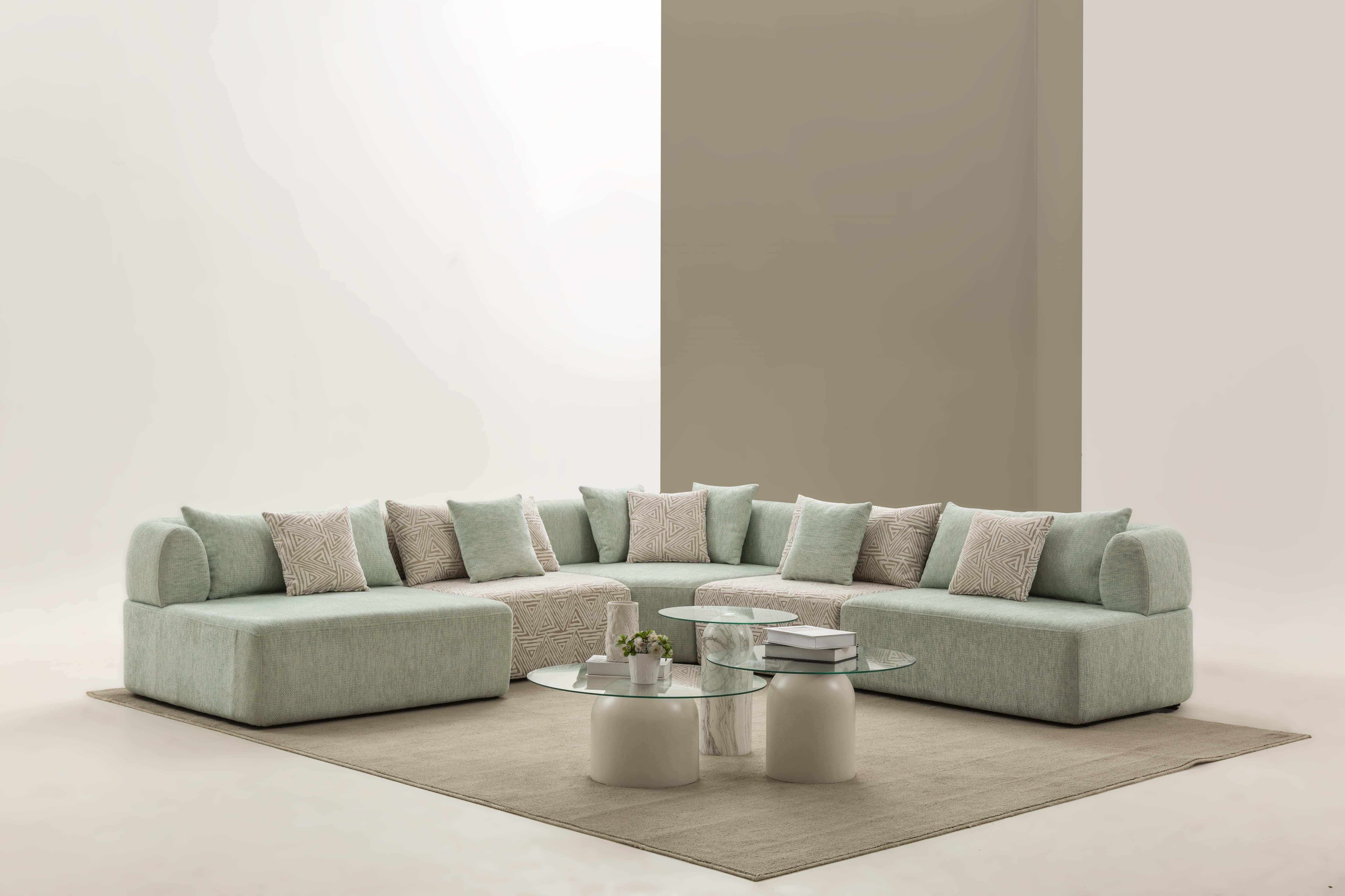 Köşe modülü, geniş ve modern oturma düzenleri için tamamlayıcı bir yapıya sahiptir.