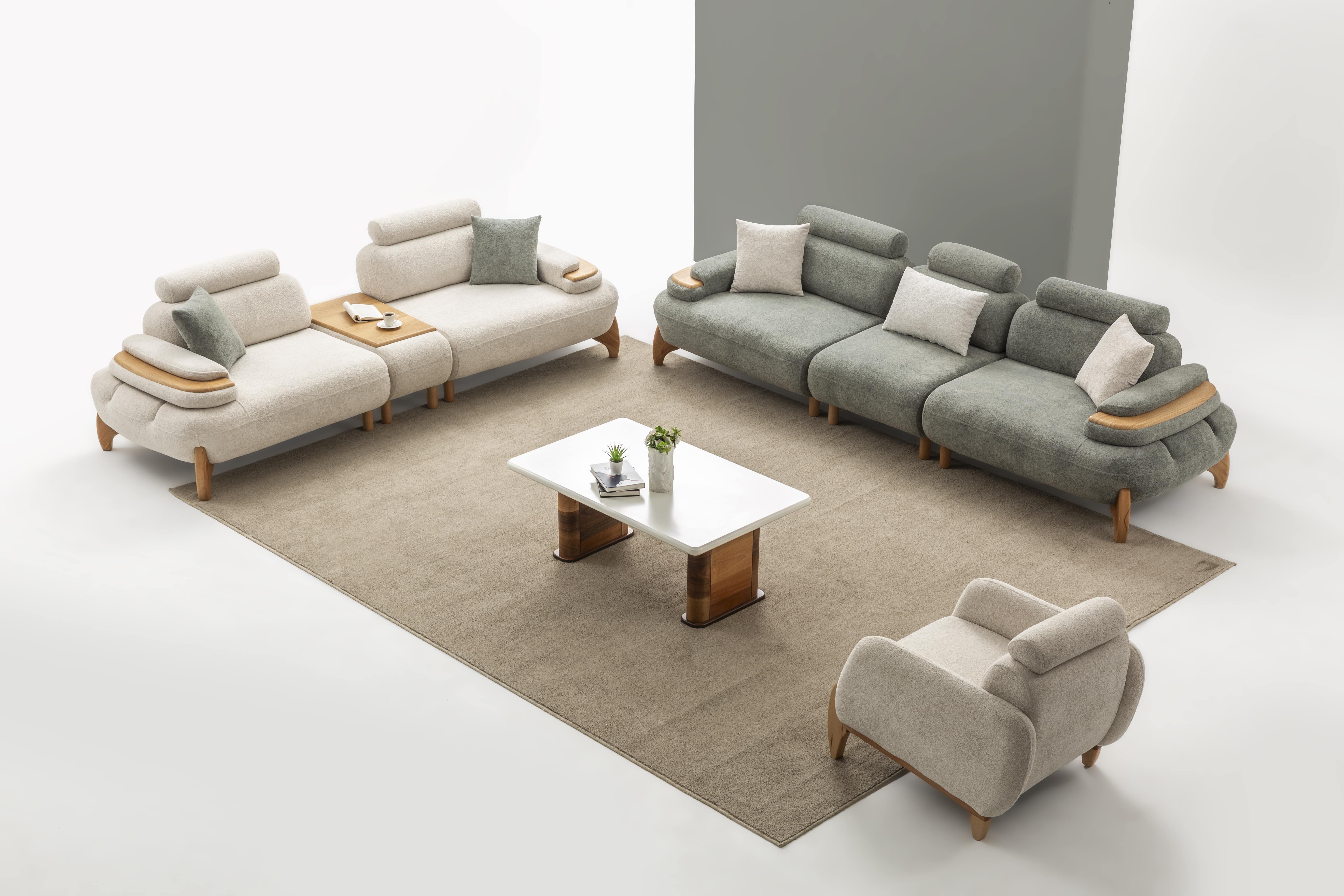 Modern ve kompakt formuyla hem tekli koltuk düzenlerinde hem de modüler kombinlerde kullanılabilir.